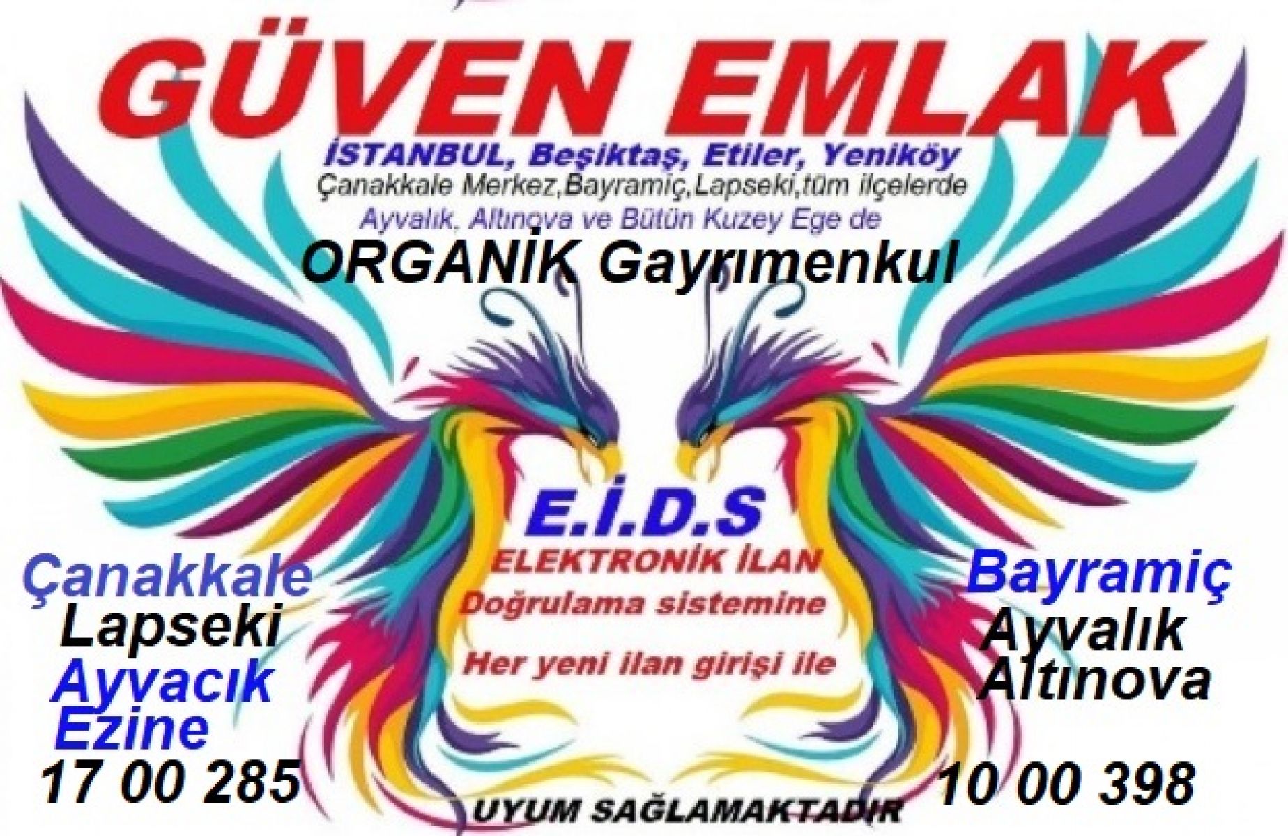 GÜVEN EMLAK*Organik Gayrımenkul, tarafından SATILMASI ve KİRALANMASI nı istediginiz taşınmazın bilgilerinizi E Devletlenizden bahse konu gayrımenkulünüzü işaretleyerek 17 00 285 no veya 10 00 398 nolu Bürolarımıza YETKİ verebilirsiniz, Yetkisi alınan SATILIK ve KİRALIK taşınmazlar ilan sistemine girilerek satışa arz edilecektir.
