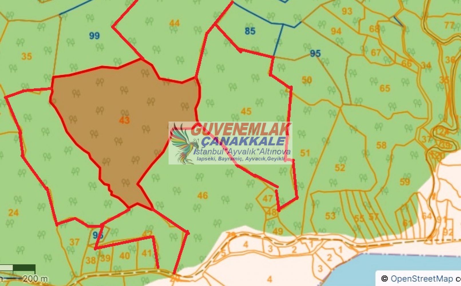 AYVACIK (ASSOS) Bademli Köyü sınırları içinde kmople deniz ve midilli manzaralı satılık tarlalar