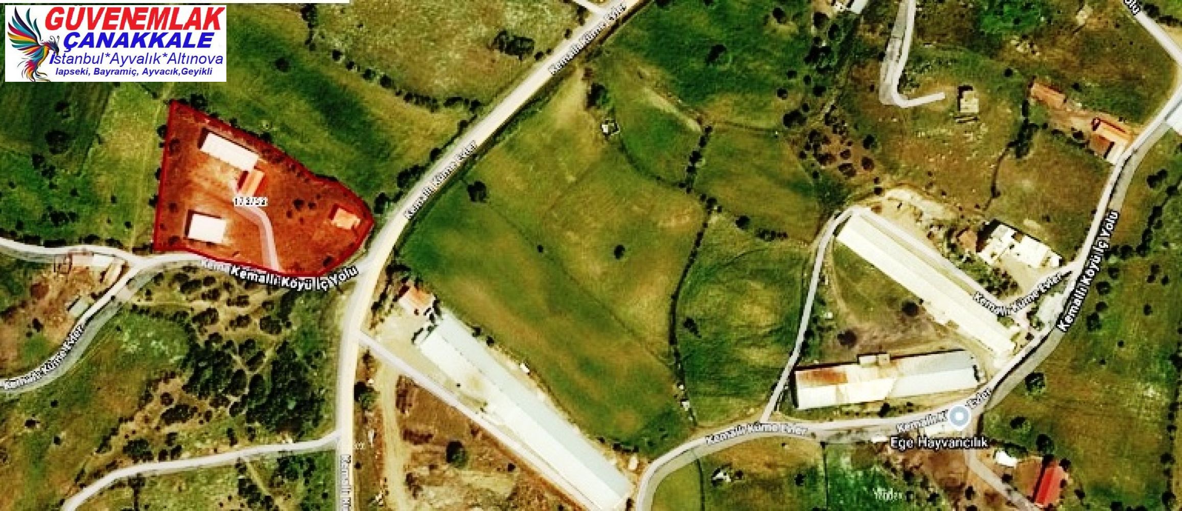 Çanakkale Ezine İlçesi Kemallı Köy içinde 5.000.-m2 ana yola cepheli arsanın içinde degişik yapı ve büyüklüklerde bina ve işyerleri vardır.Çanakkale Ezine Organize gıda sanayi çok yakın oldugu için depolama ve lojistik işyerleri yapmaga gayet müsait, çanakkale izmir otobanına da yakın köy içi elektirik ve suyu olan kendine ait trofası olan binalar işyerleri