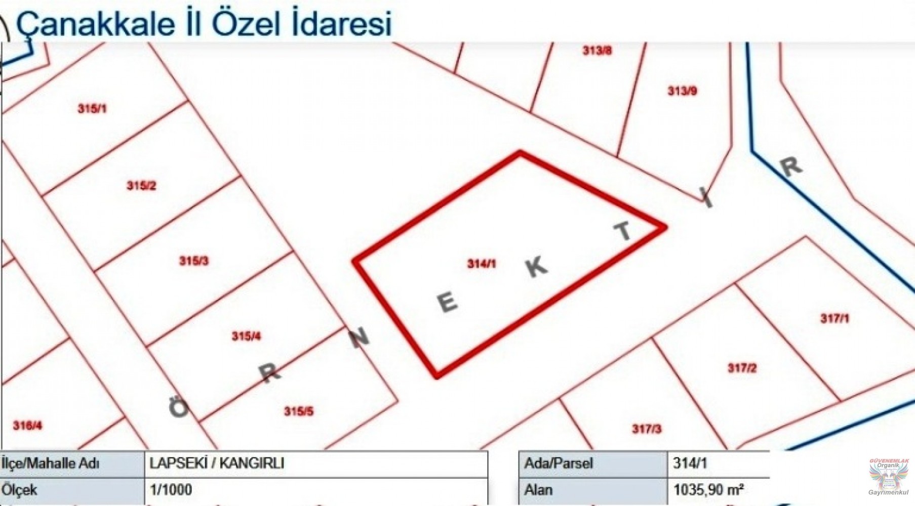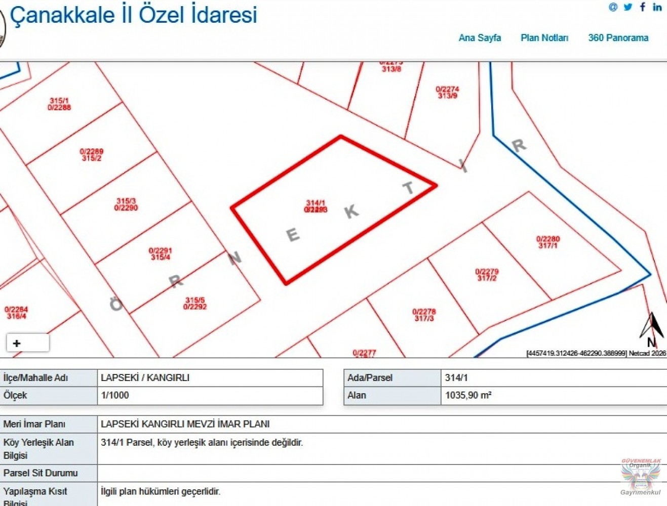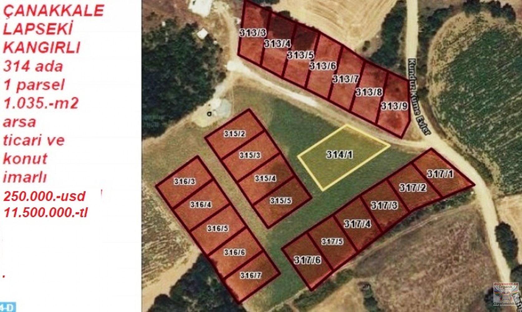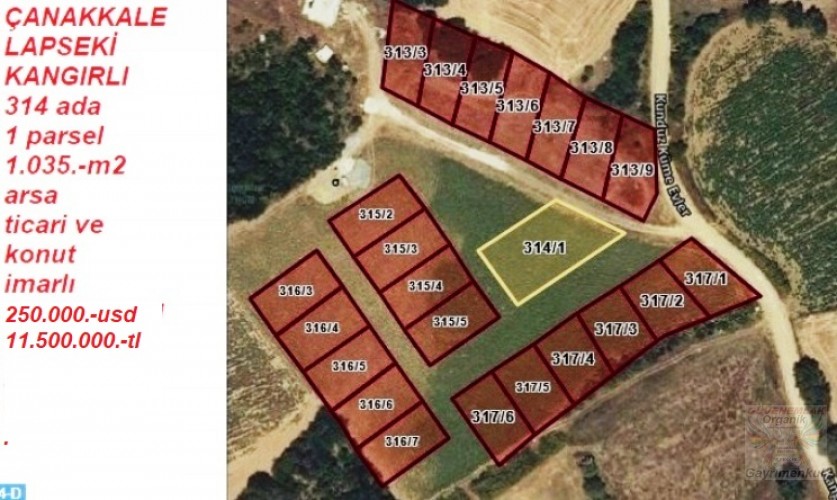 LAPSEKİ KANGIRLI 1.036.M2 İMARLI ARSA / استعراض